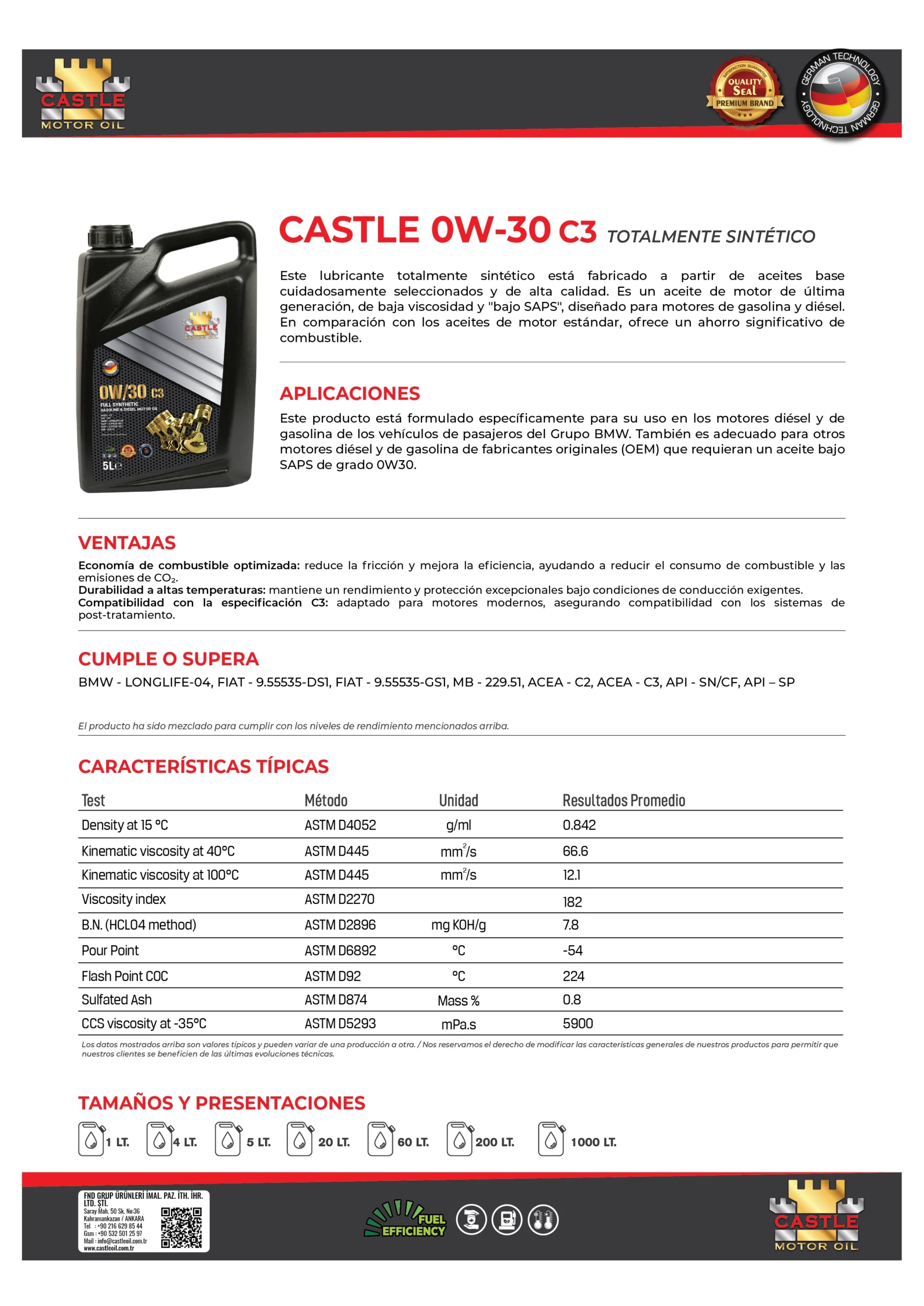 CASTLE 0W-30 C3 TOTALMENTE SINTÉTICO