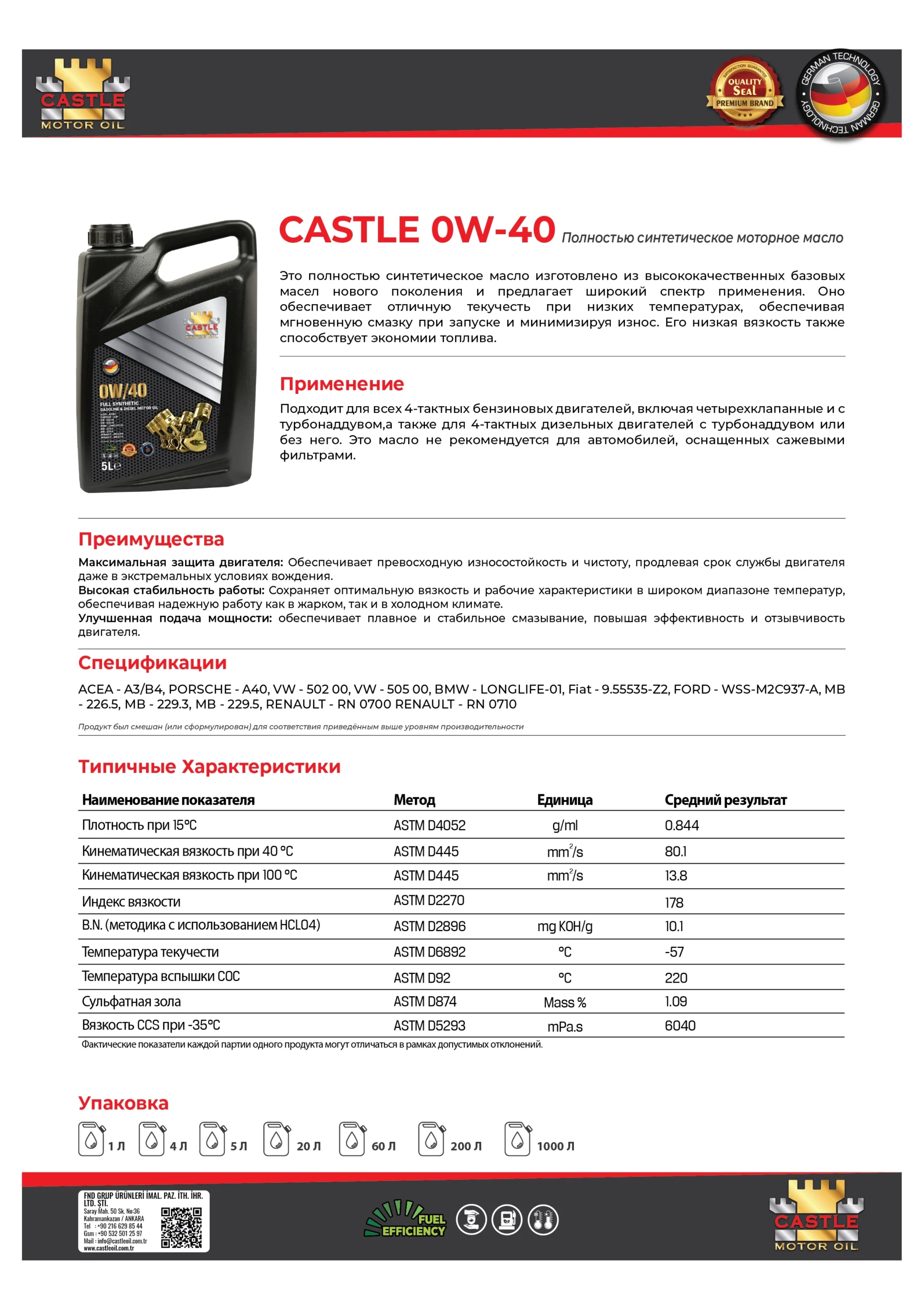 CASTLE 0W-40 ПОЛНОСТЬЮ СИНТЕТИЧЕСКАЯ