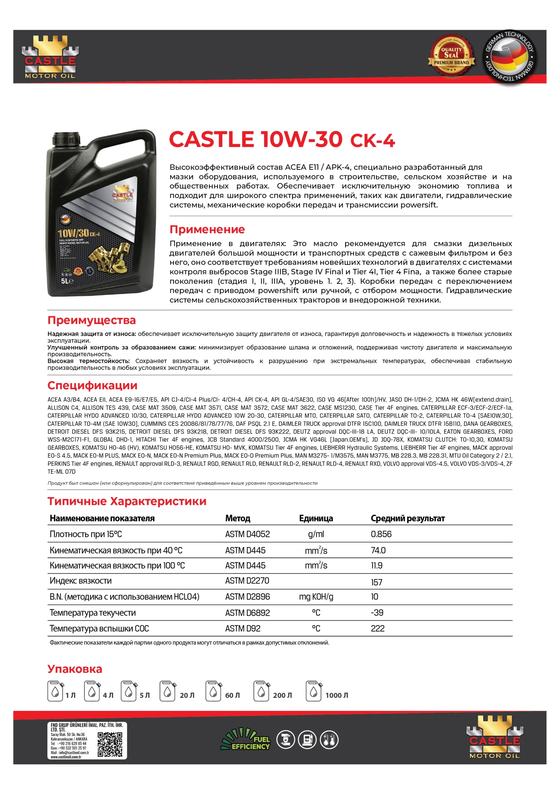 Высокоэффективный состав ACEA E11 / APK-4, специально разработанный для мазки оборудования, используемого в строительстве, сельском хозяйстве и на общественных работах. Oбеспечивает исключительную экономию топлива и подходит для широкого спектра применений, таких как двигатели, гидравлические системы, механические коробки передач и трансмиссии powersift.