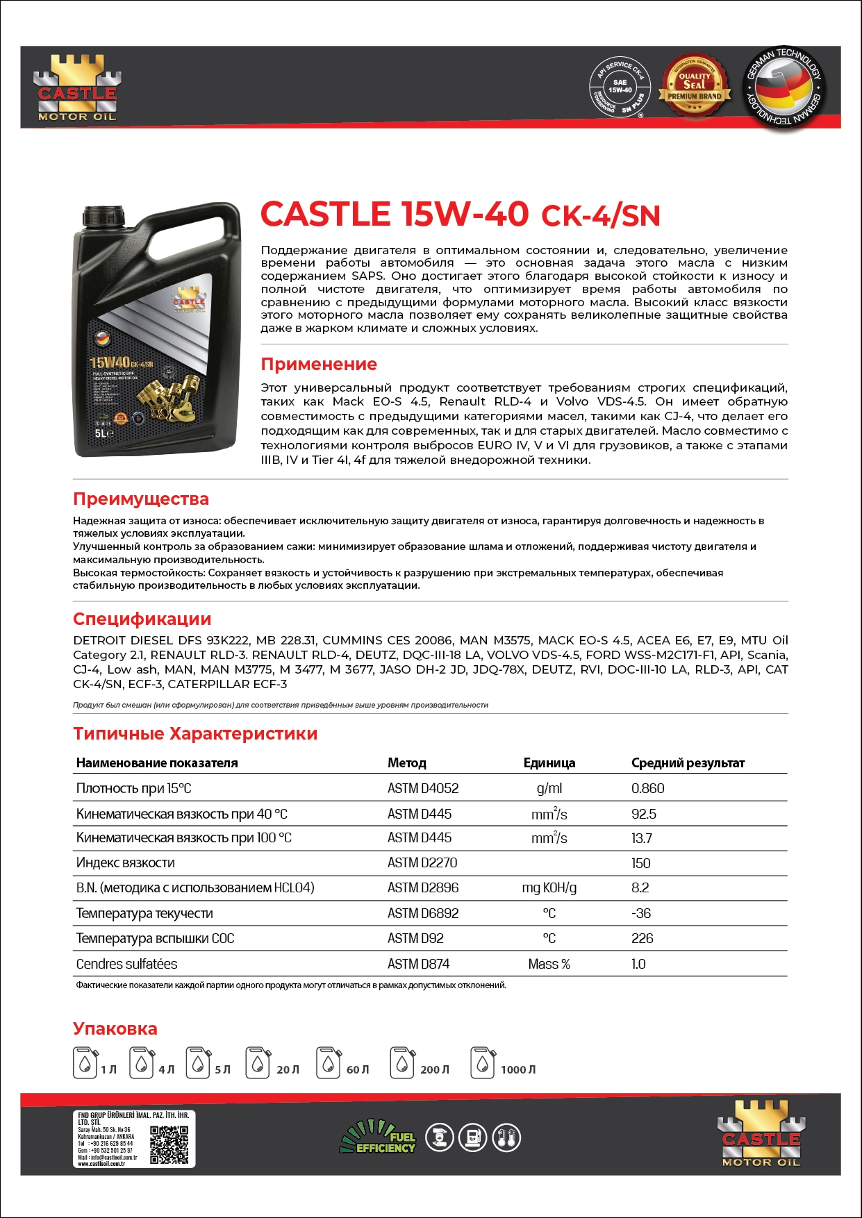 CASTLE 15W-40 CK-4/SN