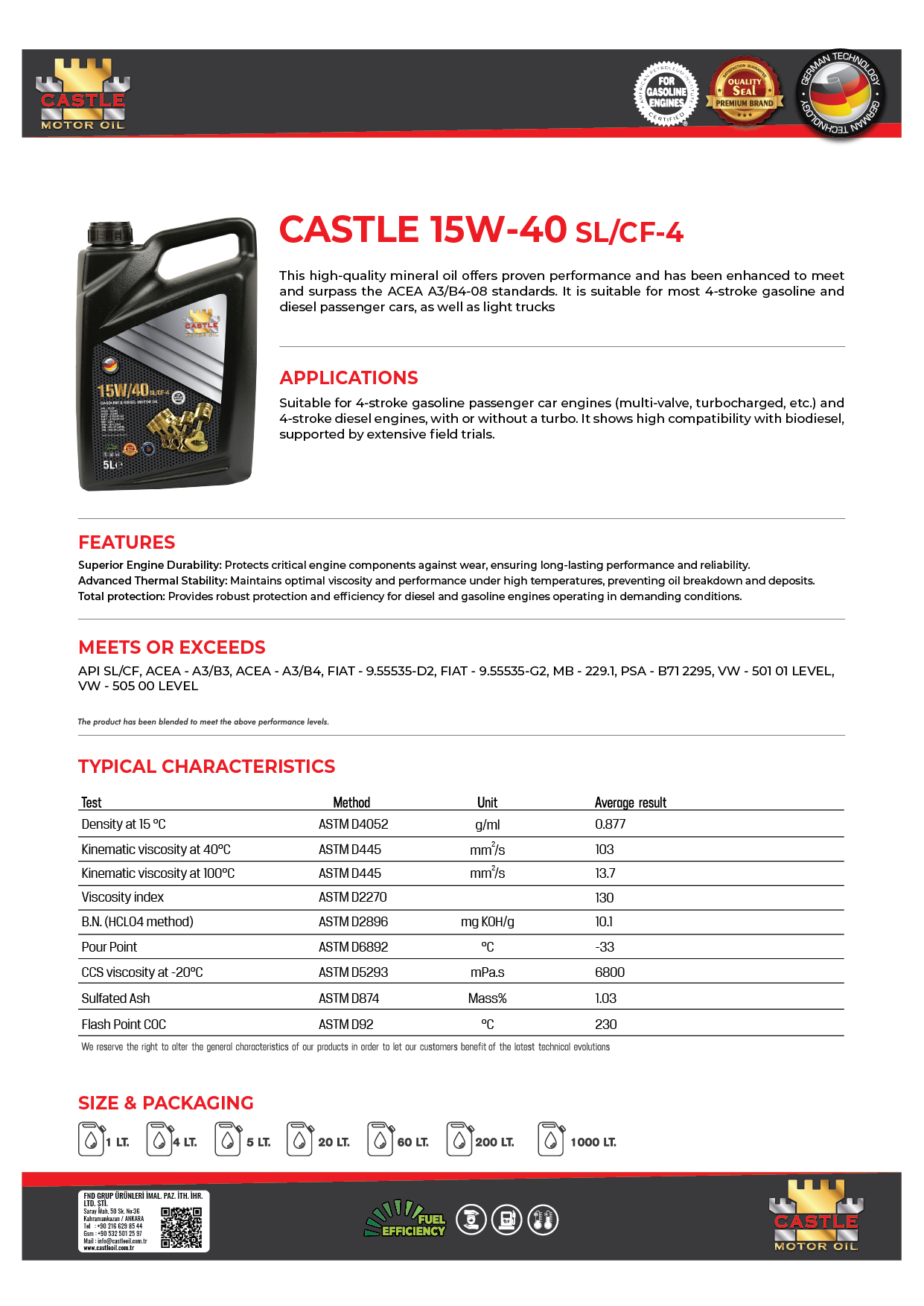 This high-quality mineral oil offers proven performance and has been enhanced to meet and surpass the ACEA A3/B4-08 standards. It is suitable for most 4-stroke gasoline and diesel passenger cars, as well as light trucks.
