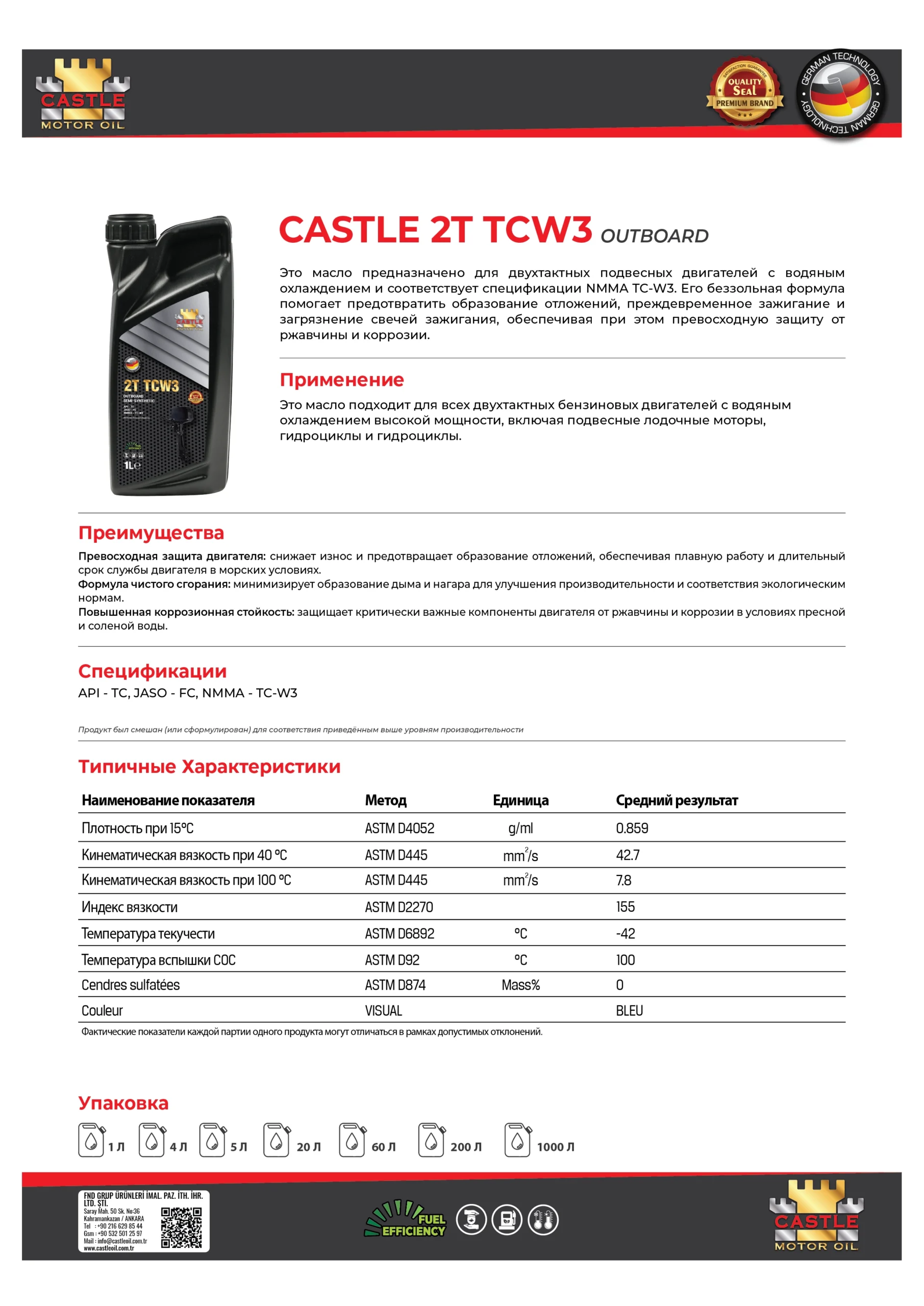Это масло предназначено для двухтактных подвесных двигателей с водяным охлаждением и соответствует спецификации NMMA TC-W3. Его беззольная формула помогает предотвратить образование отложений, преждевременное зажигание и загрязнение свечей зажигания, обеспечивая при этом превосходную защиту от ржавчины и коррозии.
