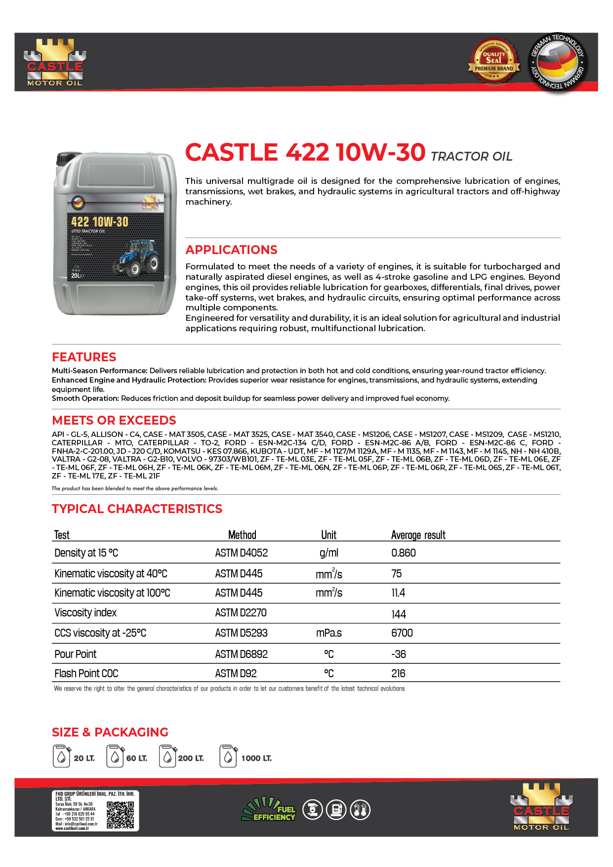 CASTLE 422 10W-30 TRACTOR OIL | 1 LT