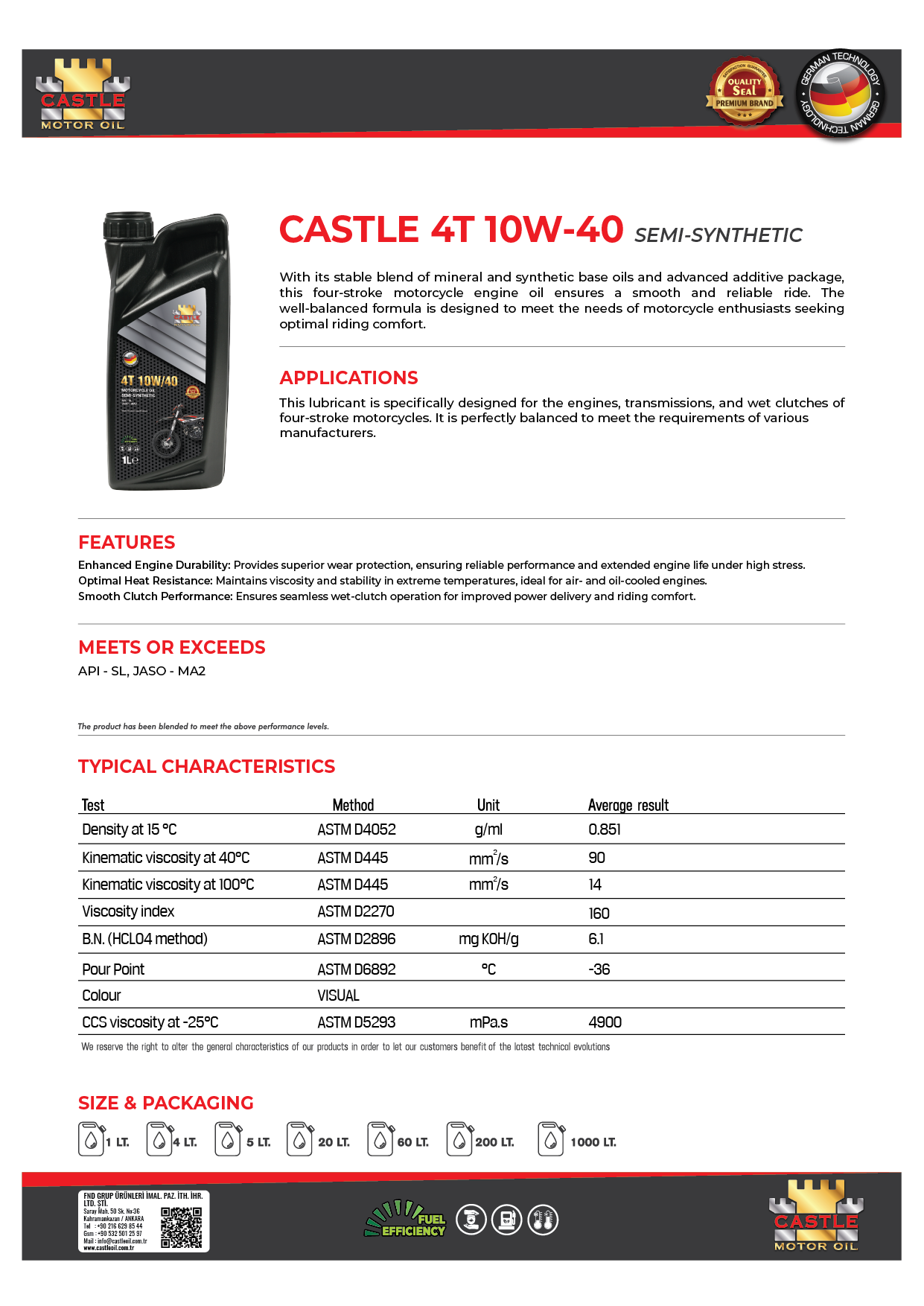 CASTLE 4T 10W-40 SEMI-SYNTHETIC | 1 LT