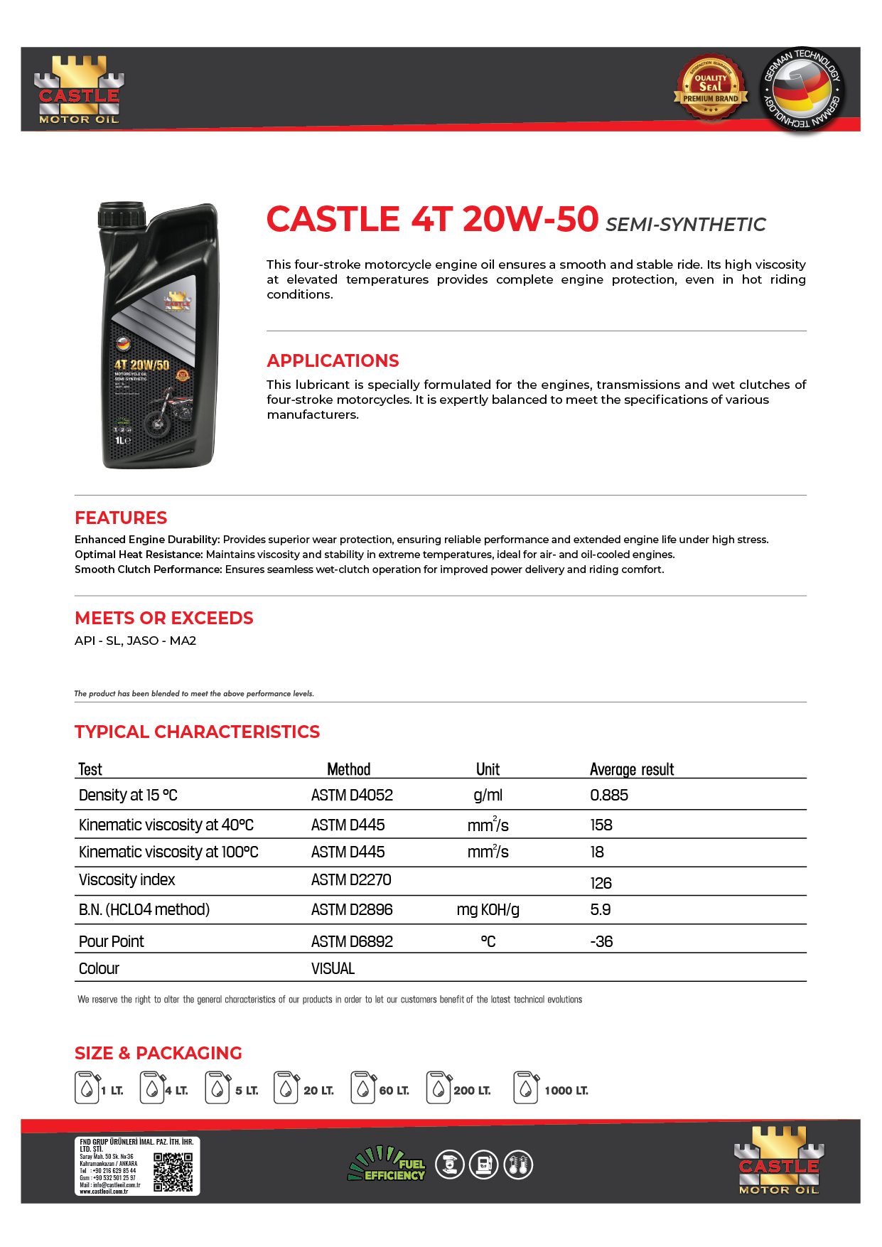CASTLE 4T 20W-50 SEMI-SYNTHETIC | 1 LT