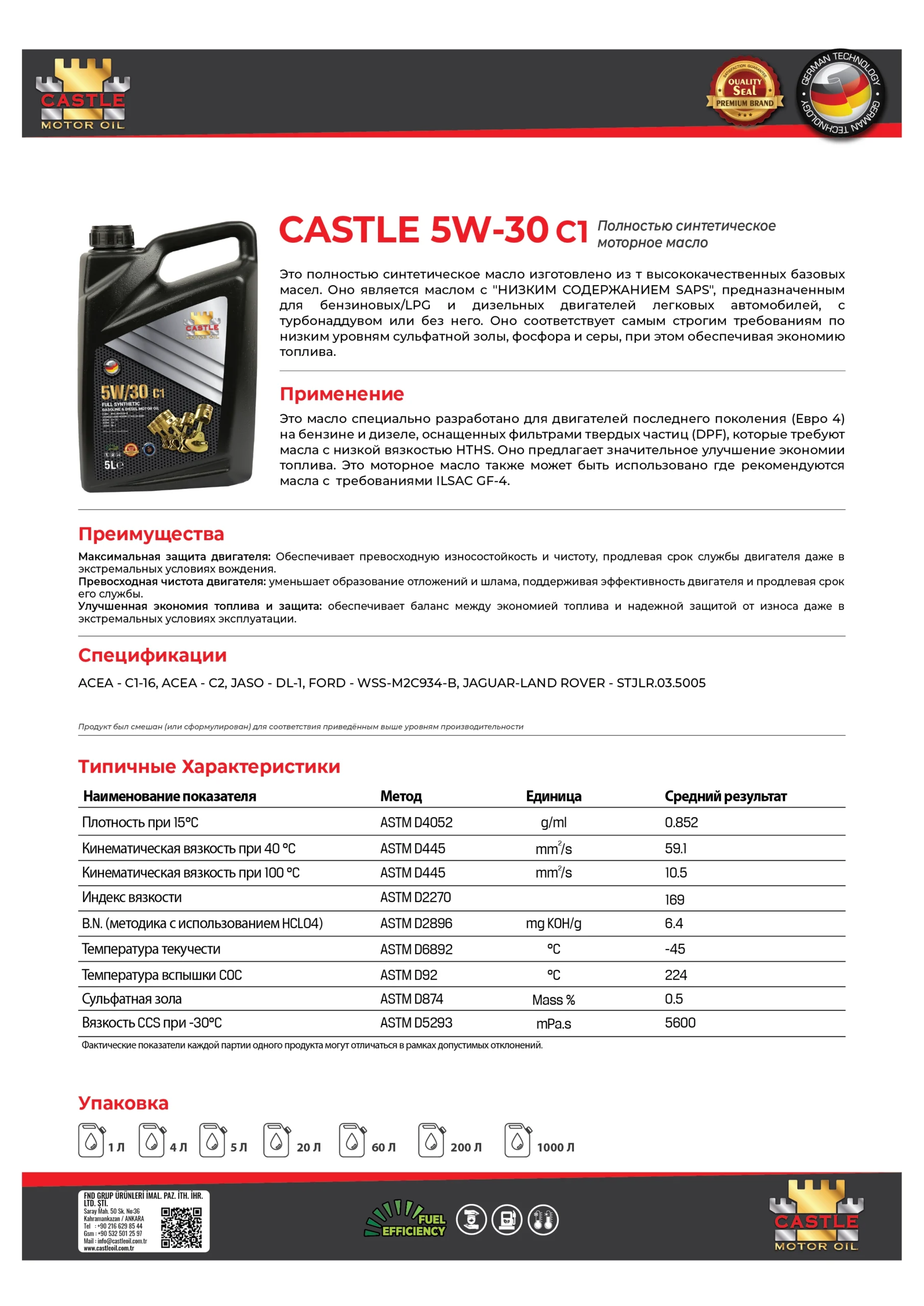 CASTLE 5W-30 C1 ПОЛНОСТЬЮ СИНТЕТИЧЕСКАЯ