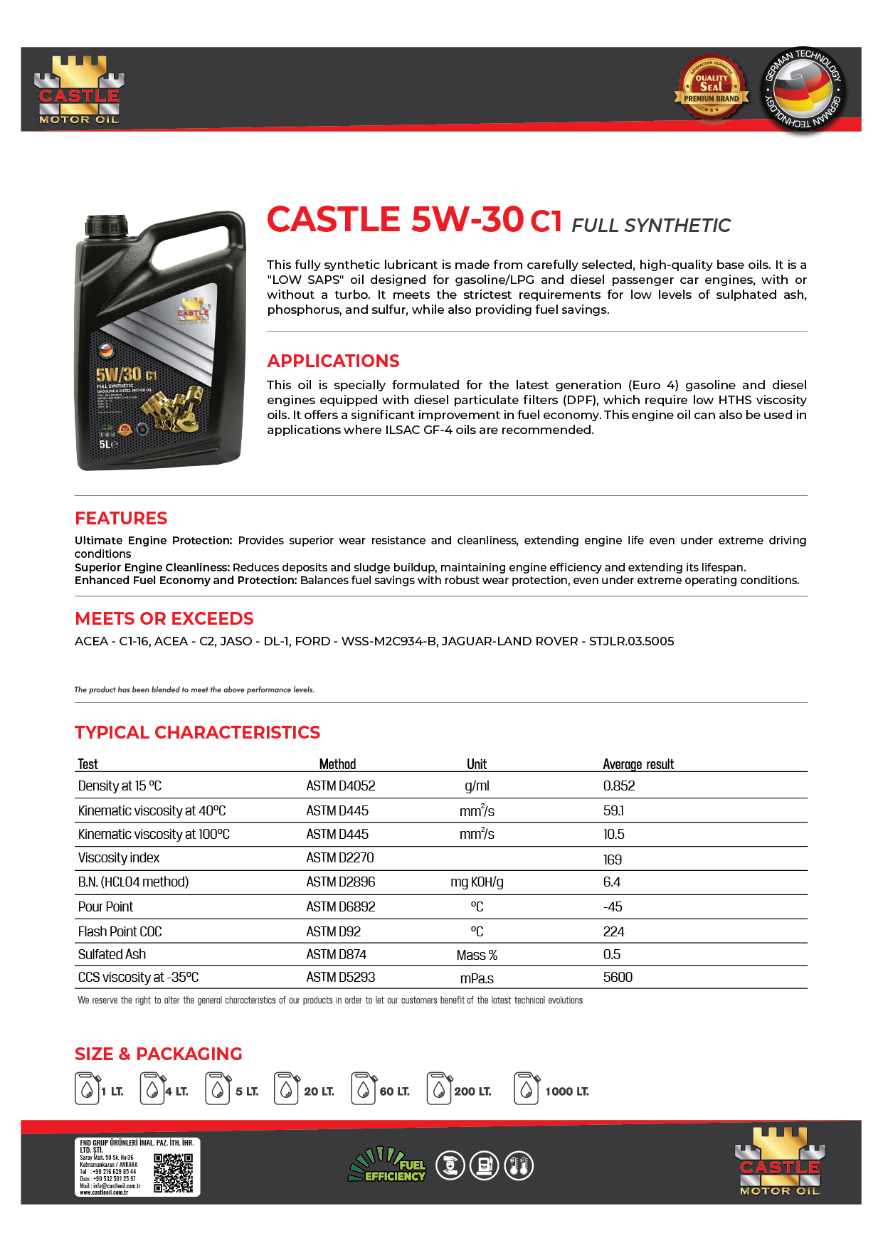 CASTLE 5W-30 C1 FULL SYNTHETIC | 5 LT