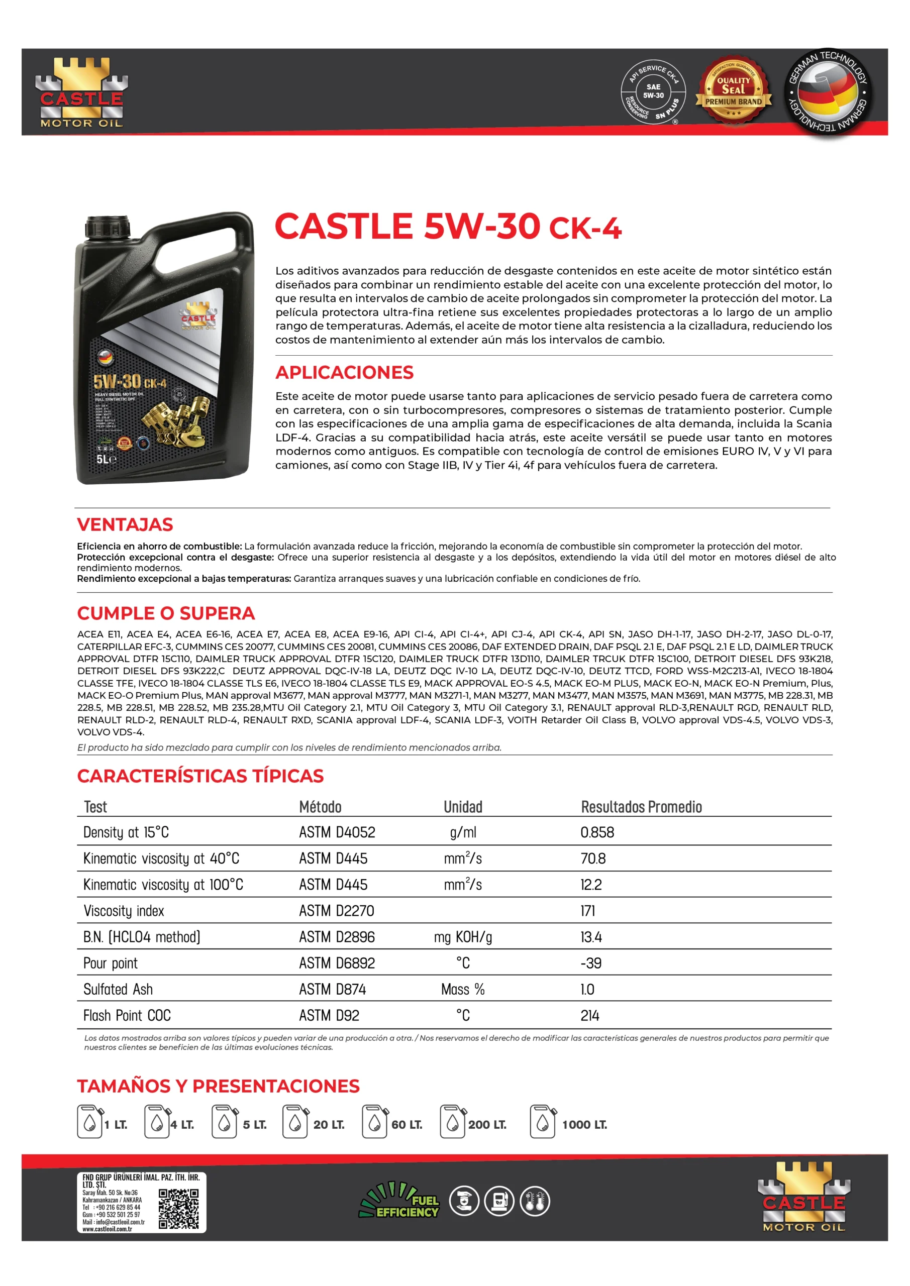 Los aditivos avanzados para reducción de desgaste contenidos en este aceite de motor sintético están diseñados para combinar un rendimiento estable del aceite con una excelente protección del motor, lo que resulta en intervalos de cambio de aceite prolongados sin comprometer la protección del motor. La película protectora ultra-fina retiene sus excelentes propiedades protectoras a lo largo de un amplio rango de temperaturas. Además, el aceite de motor tiene alta resistencia a la cizalladura, reduciendo los costos de mantenimiento al extender aún más los intervalos de cambio.