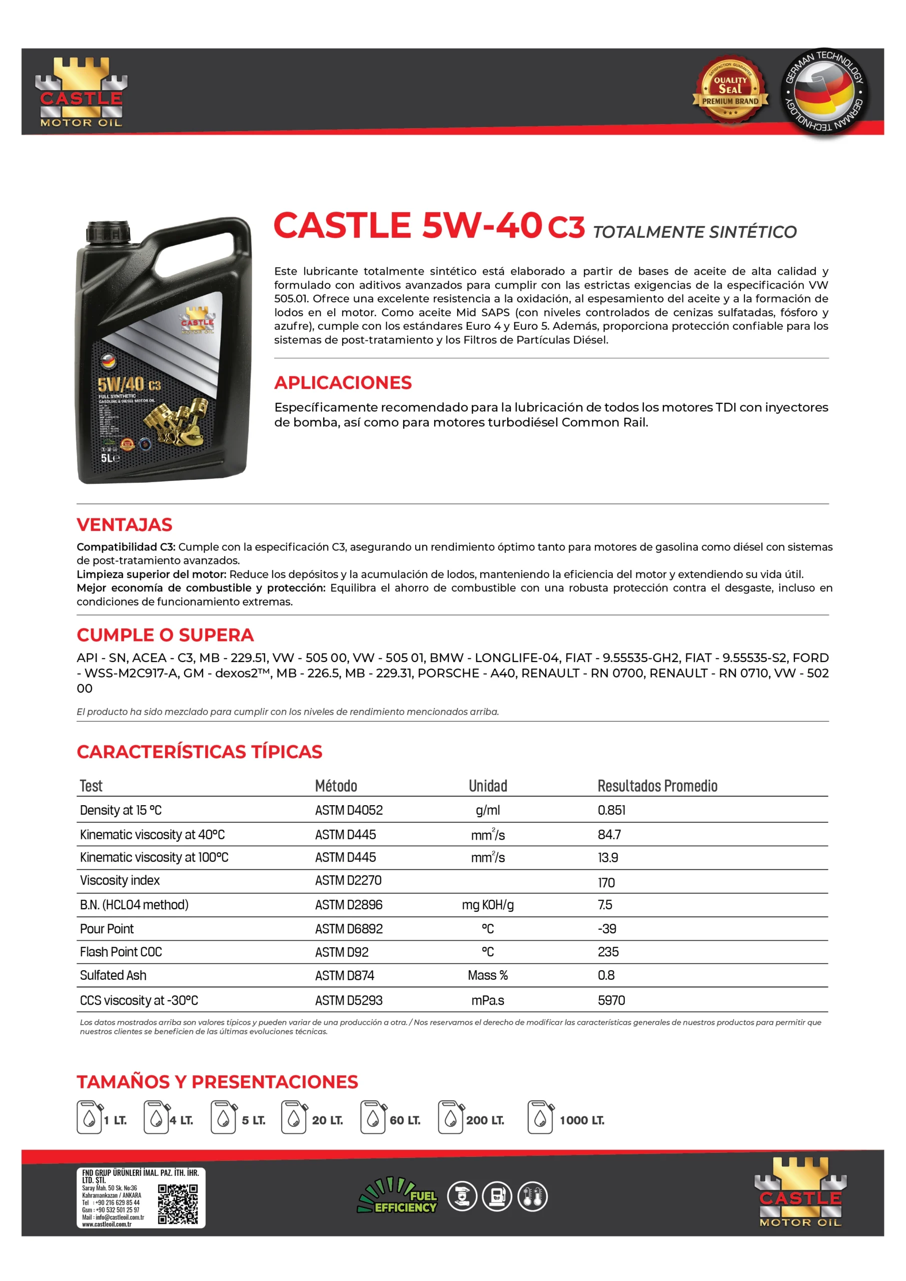 CASTLE 5W-40 C3 TOTALMENTE SINTÉTICO